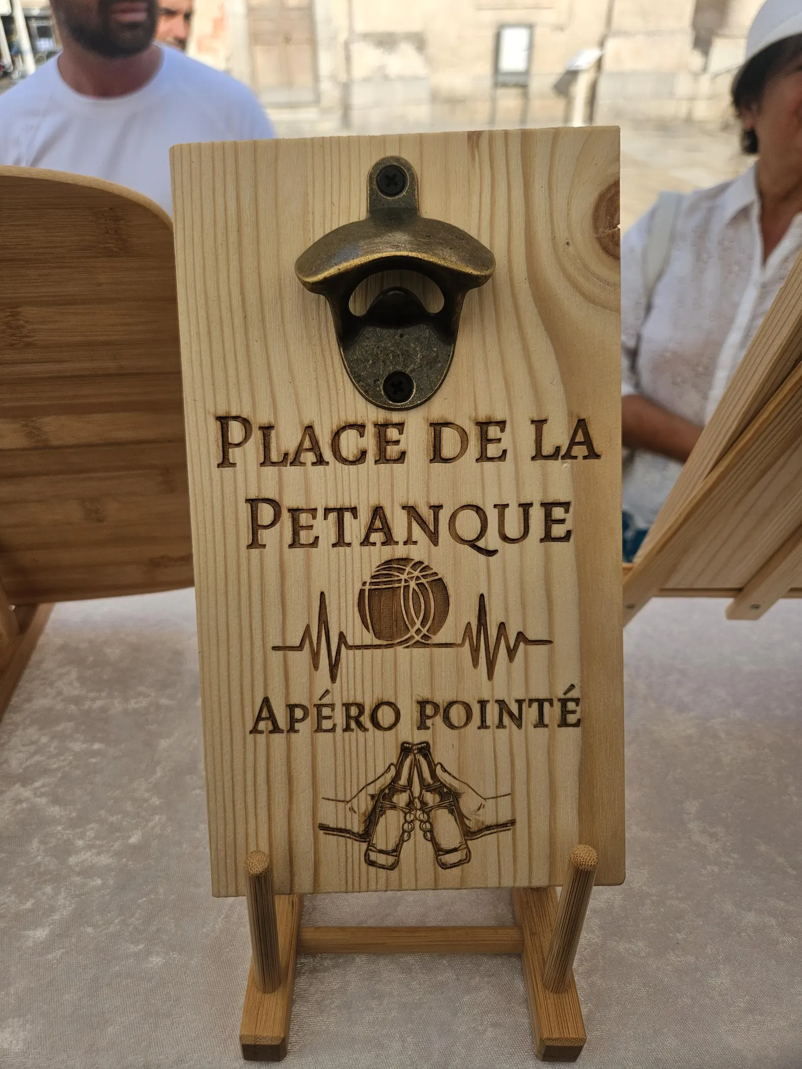Décapsuleur mural pétanque personnalisé en bois verni – Cadeau unique pour Noël, anniversaire, fête des pères