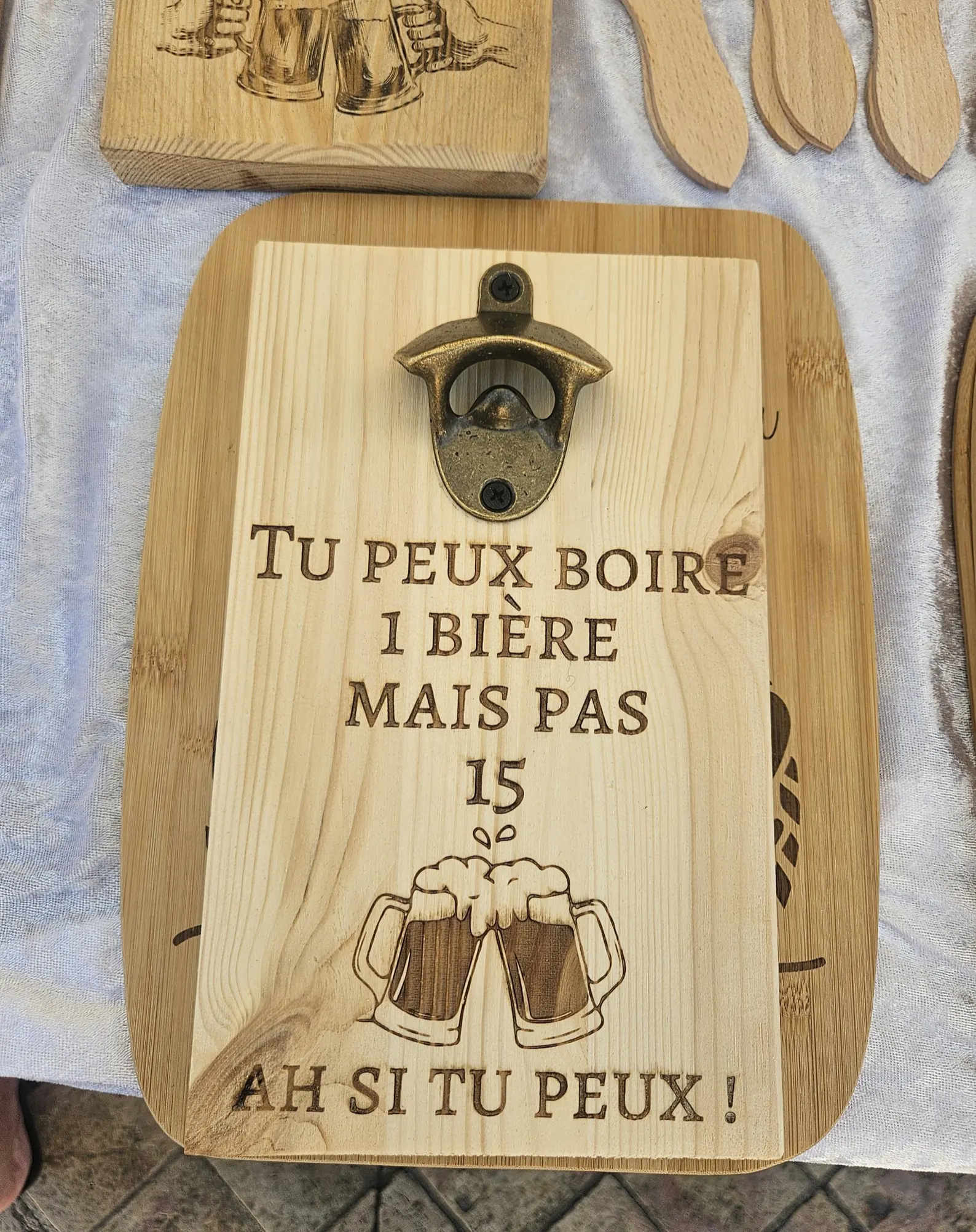 Offrez-vous un accessoire à la fois authentique, pratique et décoratif : notre décapsuleur mural artisanal en bois verni.