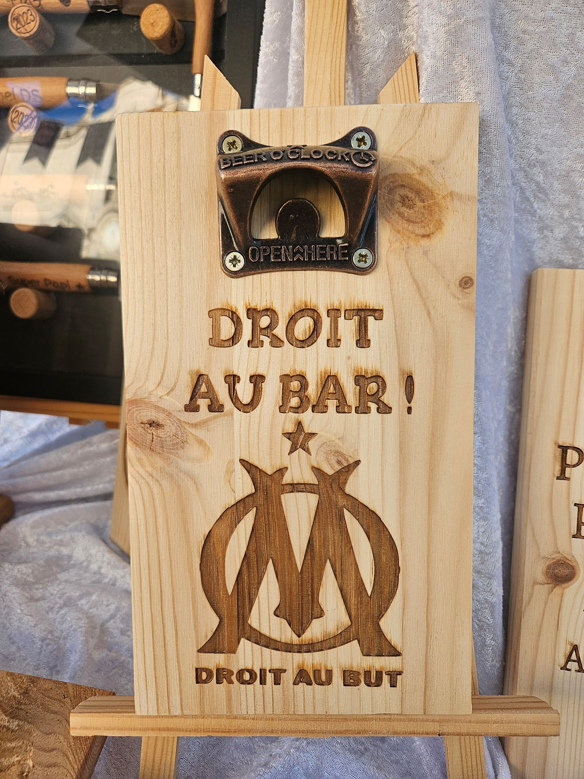 Décapsuleur mural Marseille OM personnalisé en bois – Cadeau unique pour Noël, anniversaire, fête des pères