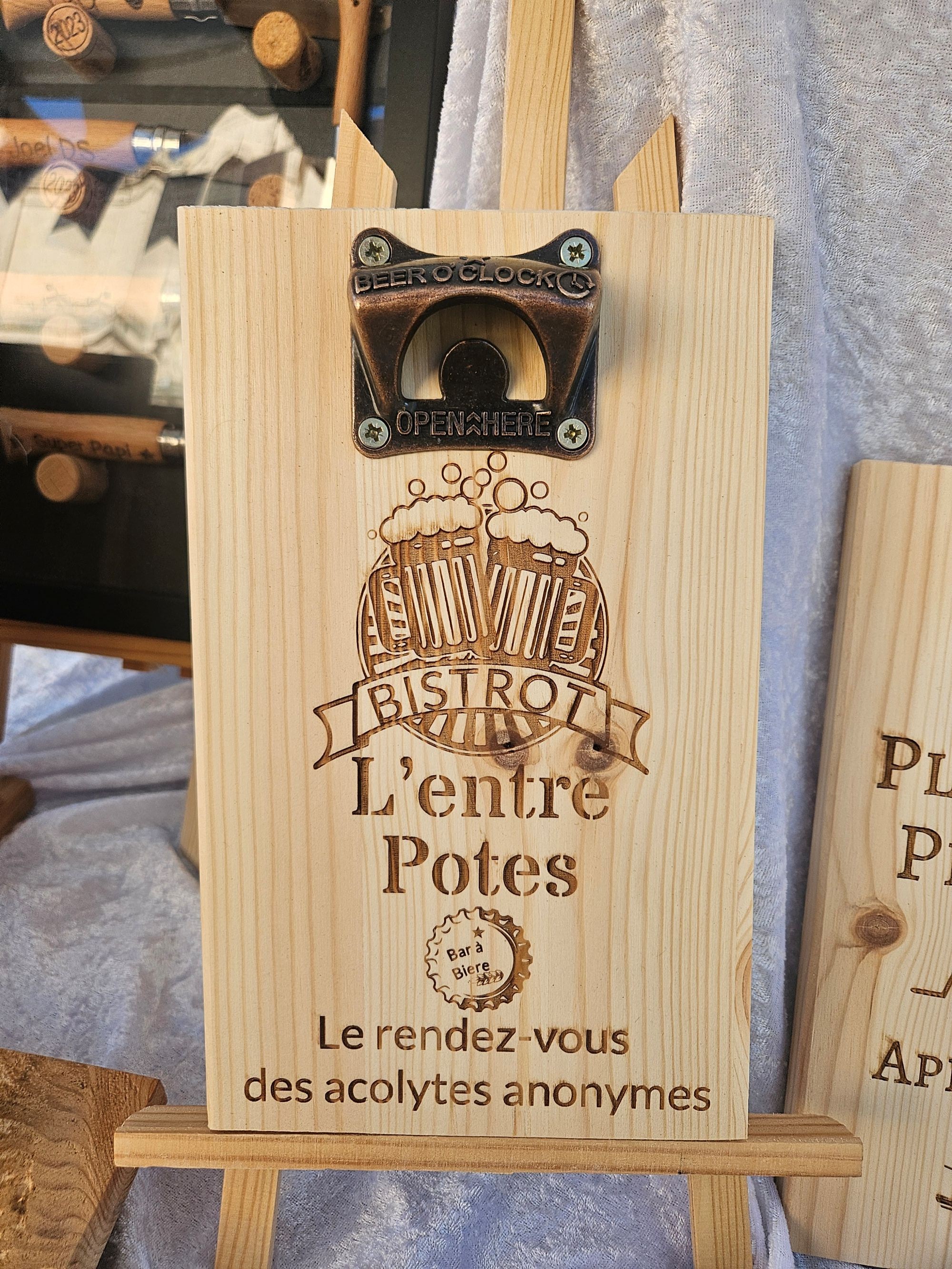 Décapsuleur mural l'entre potes personnalisé en bois – Cadeau unique pour Noël, anniversaire, fête des pères